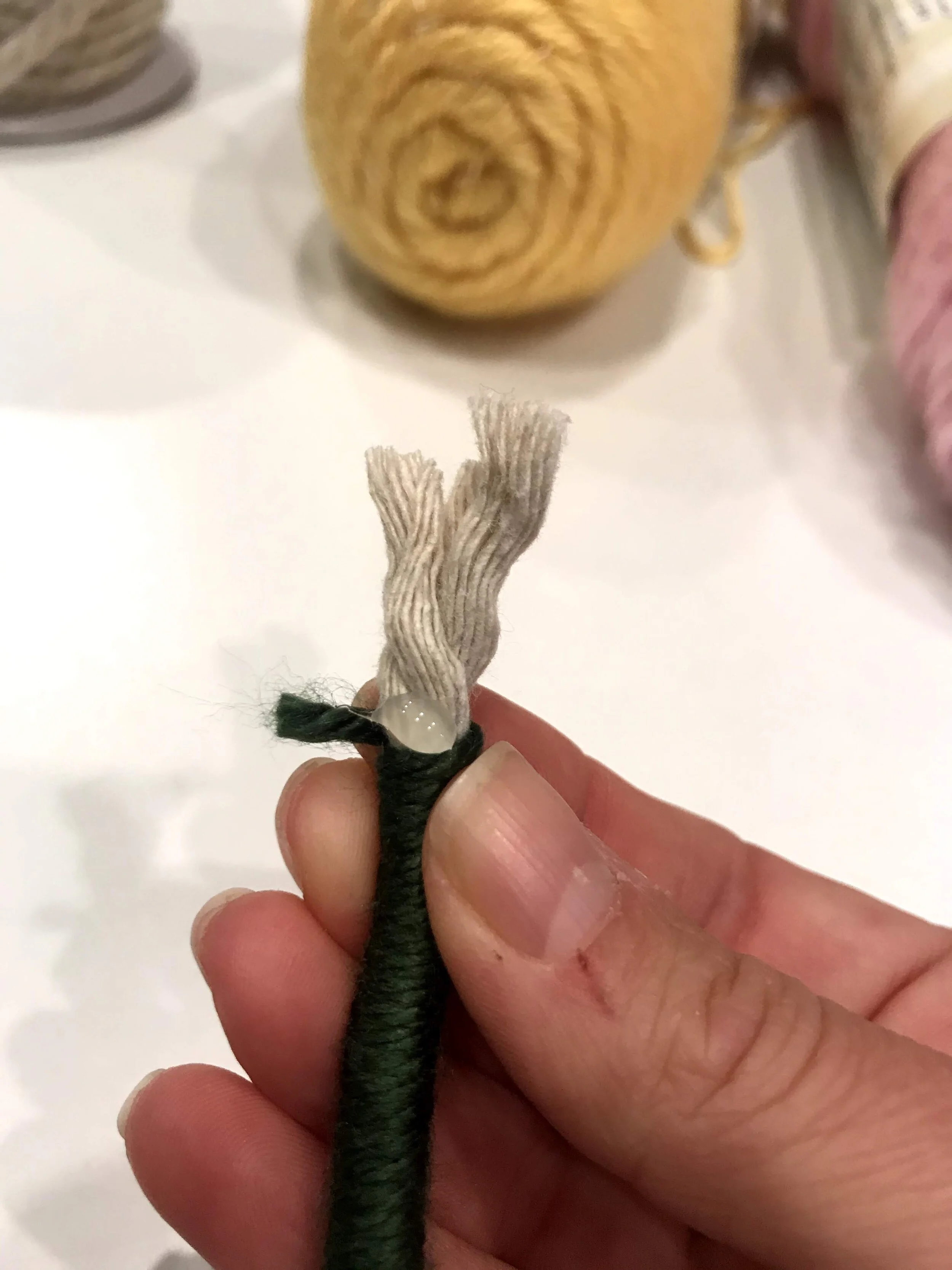 13. When all the pieces are glued together, fluff the ends and trim any strings from the ropes that do not line up.