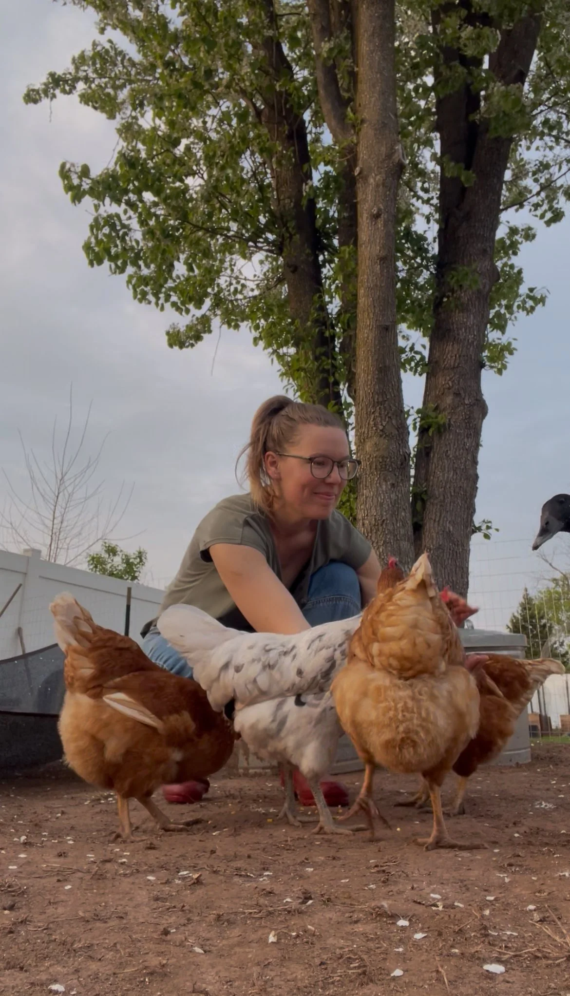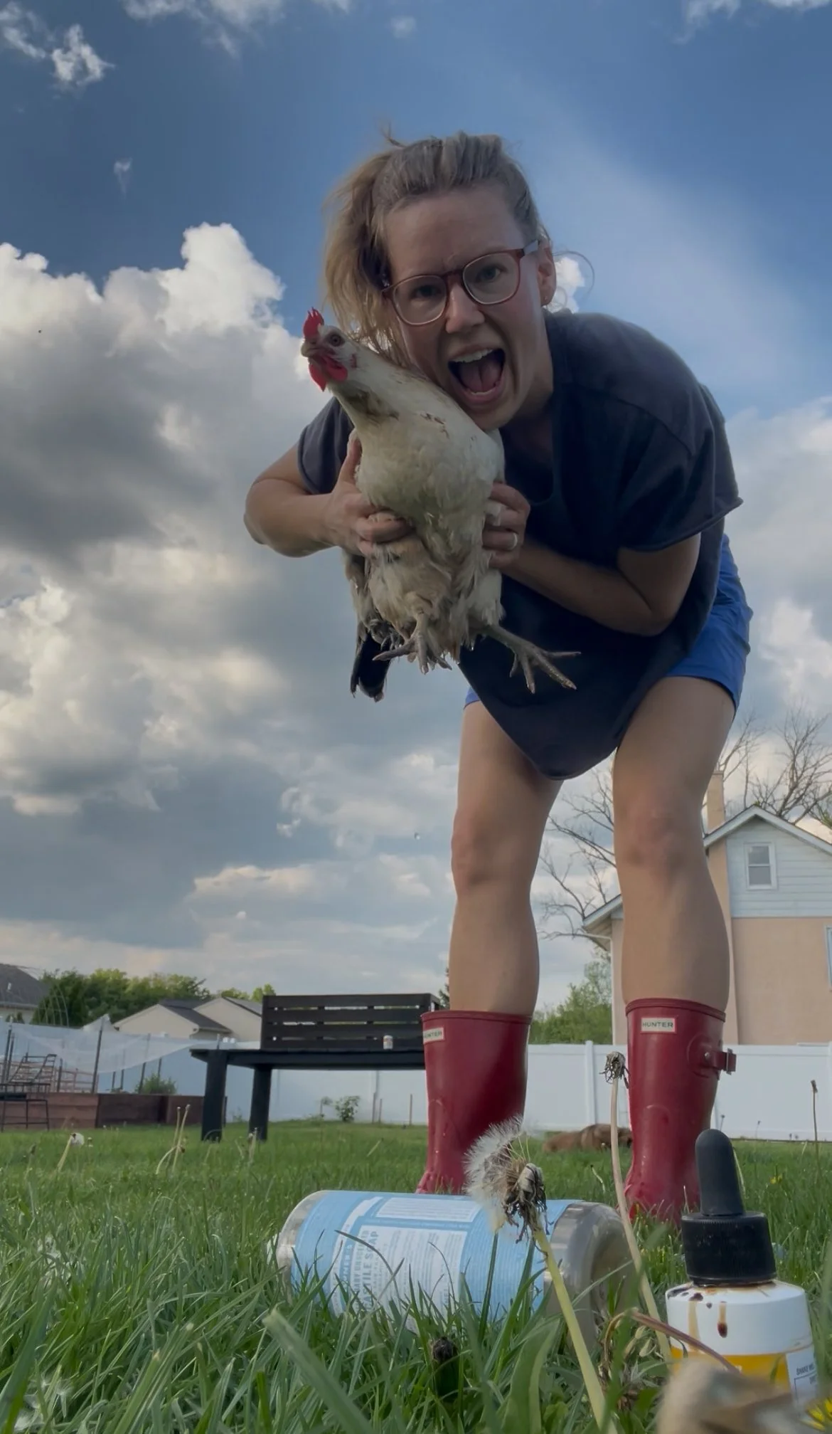 With a hen tucked under your arm and the quiet confidence of someone who now casually owns drawing salve for birds.